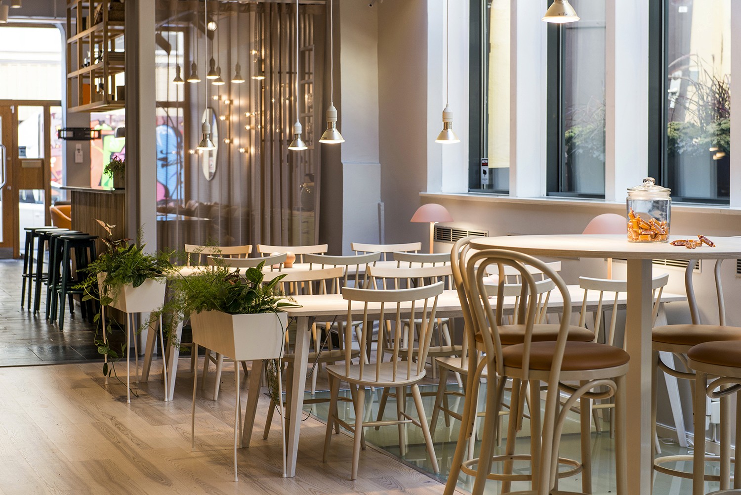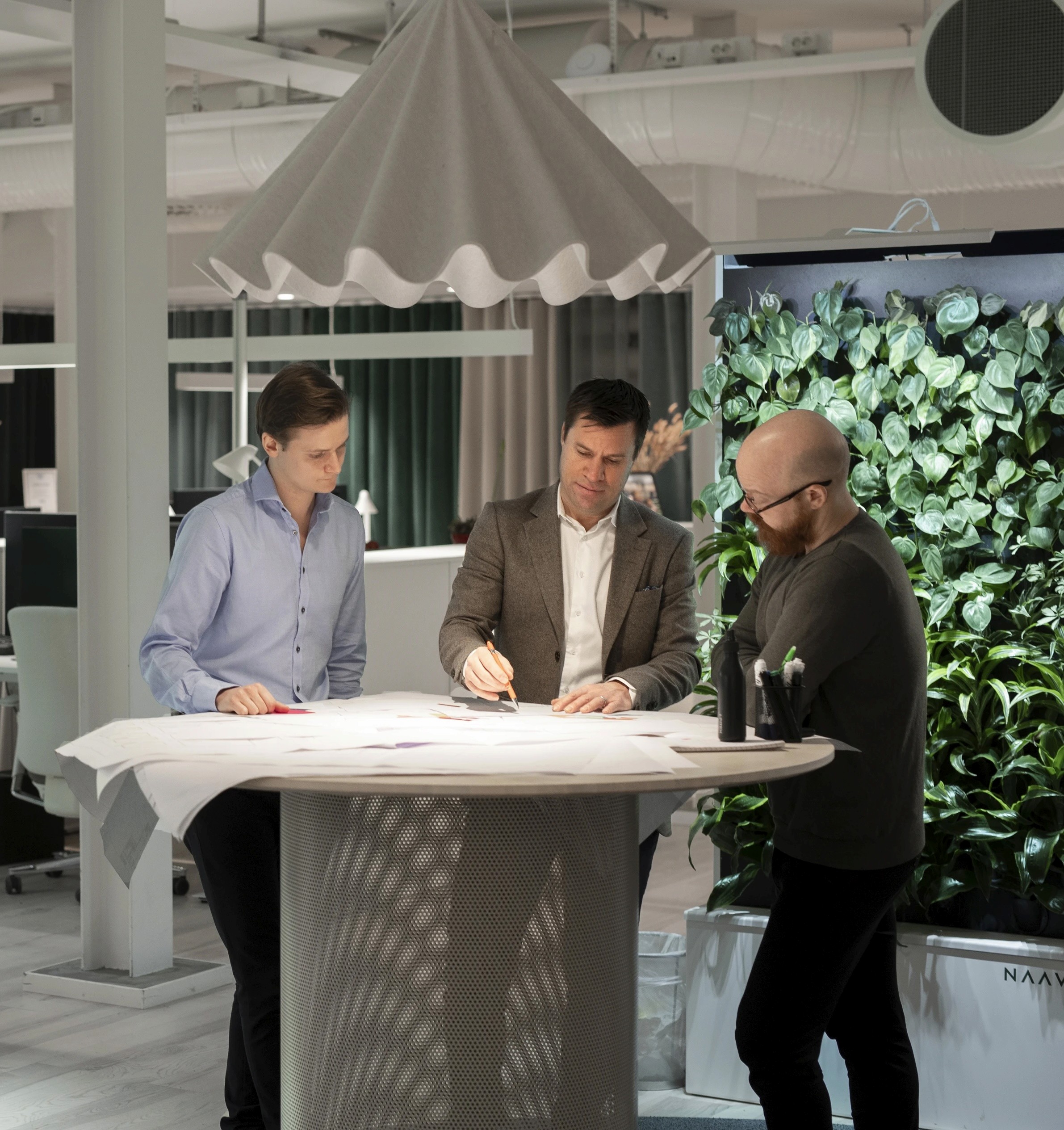 Vi är stolta över att ha branschens förmodligen mest centrala kontor. Här har vi utnyttjat vår egen kompetens tillsammans med inredningsarkitekter för att skapa en hälsosam och effektiv inomhusmiljö. En plats där arbete varvas med djupa samtal i loungen eller fartfyllt bollande vid pingisbordet.